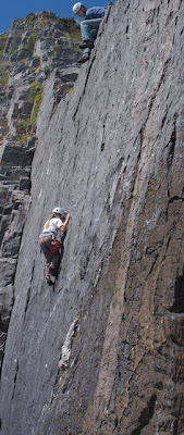 Below - 2 other climbers have just finished the route - which followed the ridge to their left.