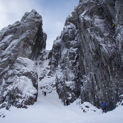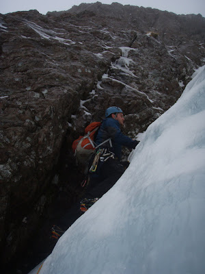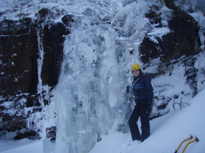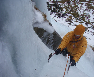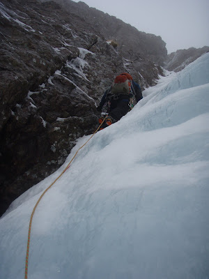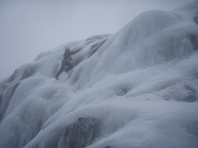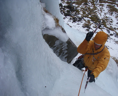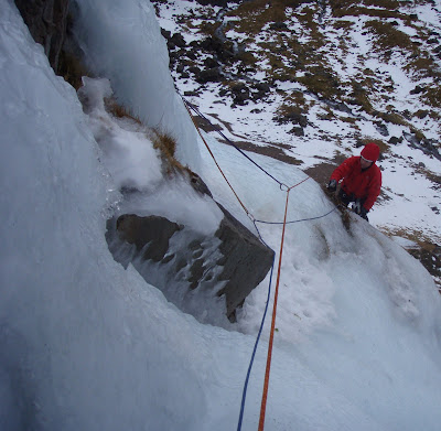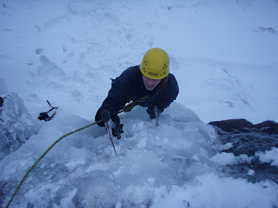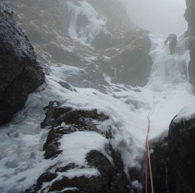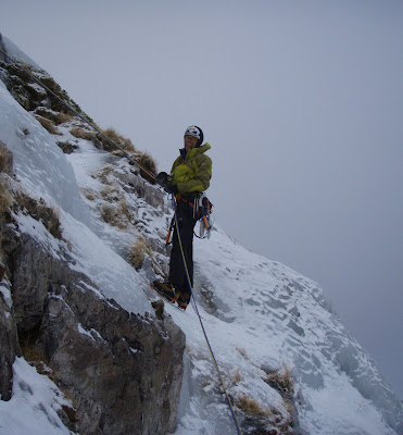 We climbed 2 pitches on the ice left of the direct Central Gully start. PYB also had the same idea - but for bottom roping.