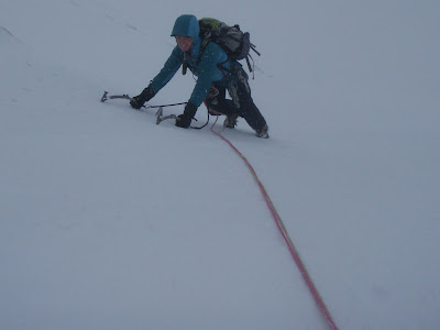 The weather was as forecast with near whiteout conditions at times. The wind transported a great deal of new snow, and a lot of deep slab has built up. Make your choices tomorrow carefully - SAIS Lochaber, Glencoe.