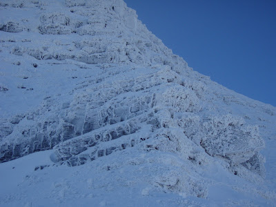 The North Westerly and Northerly winds will continue, and the temp will drop overnight and tomorrow. The freezing level will initially be low down at about 450m. It was 8.3C on Aonach Mor today at 11am, but is already down to -2.3C (5pm). It's forecast to be -5C at the summit of the Ben tomorrow am. Good news to complete this thaw freeze cycle.