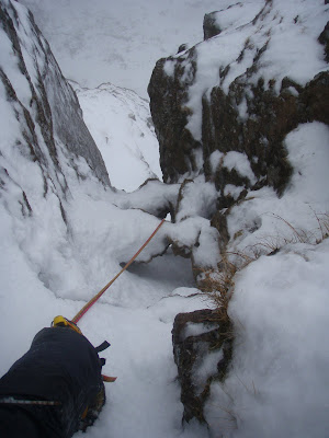 After our morning fun on No. 6 Gully, on Aonach Dubh, West Face, we decided to extend our day and have a look on the North Face of Stob Coire Nam Beith, hoping to find something hanging in there. We looked at Deep Cut Chimney, hoping it would go, but decided to go for the ice to the side on Central Gully (IV, 4 ***). From the ground we could see the poor quality ice (a gap) on pitch 3, but decided to go for it anyway. The mixed gap proved to be the excitement of the day.