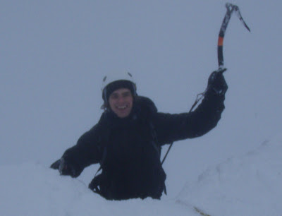 Seconds later the snow flurry passes. Quiet before the storm. Mark heading for the ice