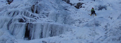 The top pitch had an exciting semi frozen section with fragile ice on the edge