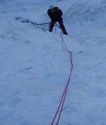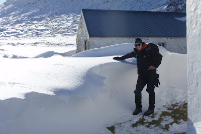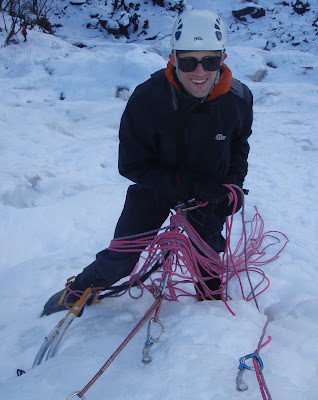 Christian wanted to do Tower Ridge, but his suitcase from Paris didn't arrive, so plans had to change and revolve around getting him kitted out in winter kit before we started. We headed for Curved ridge after a late start and found the first 30 mins of the walk arduous with very deep snow. We decided to turn around and abandon our plan and retreat to do Steall Falls.