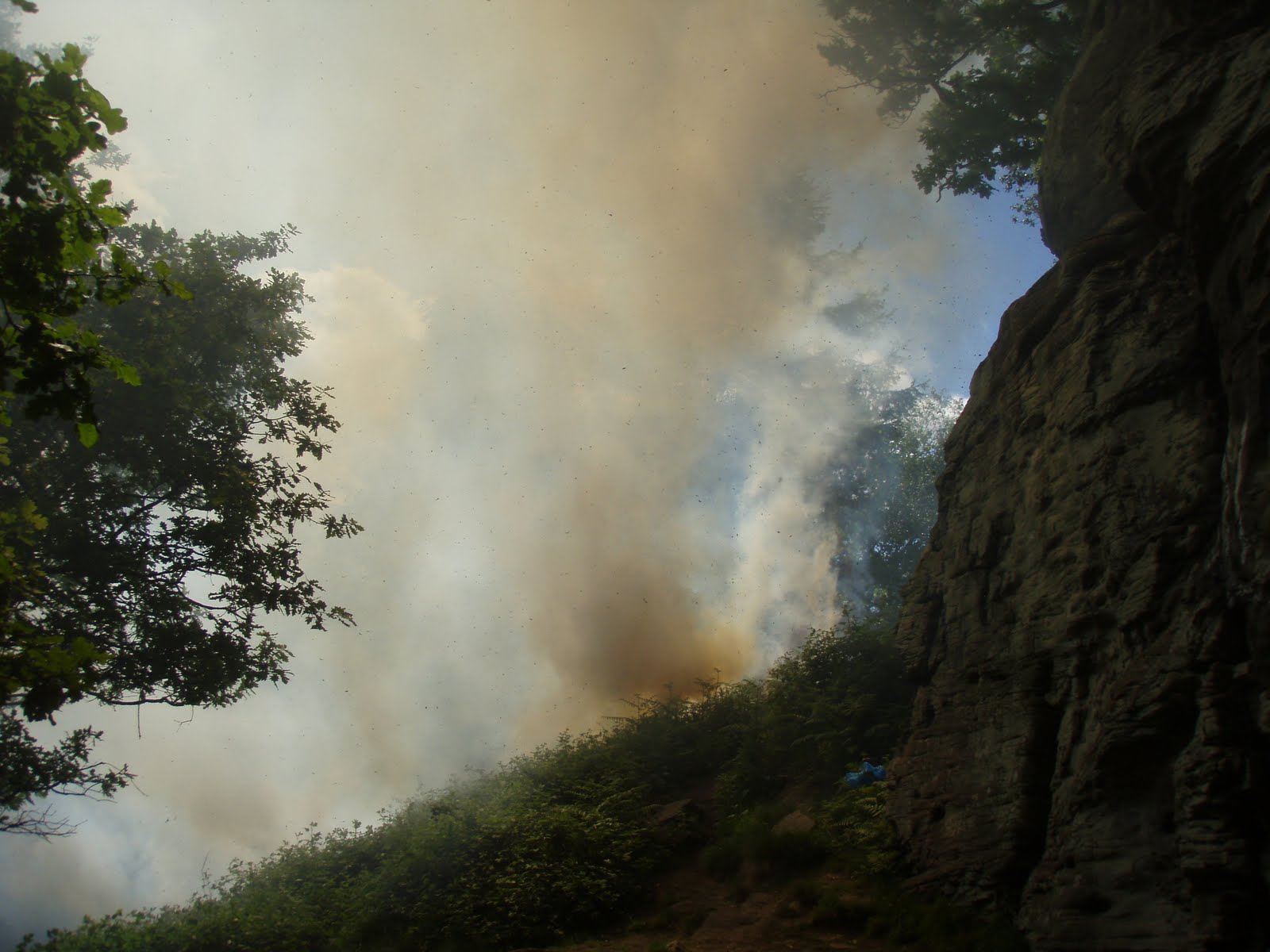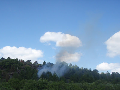 I was working with Claire today. The day started normally. But towards the end a bush fire started. We had to declare an emergency, and evacuate the site. We called 999, and moved away for them to do their job.