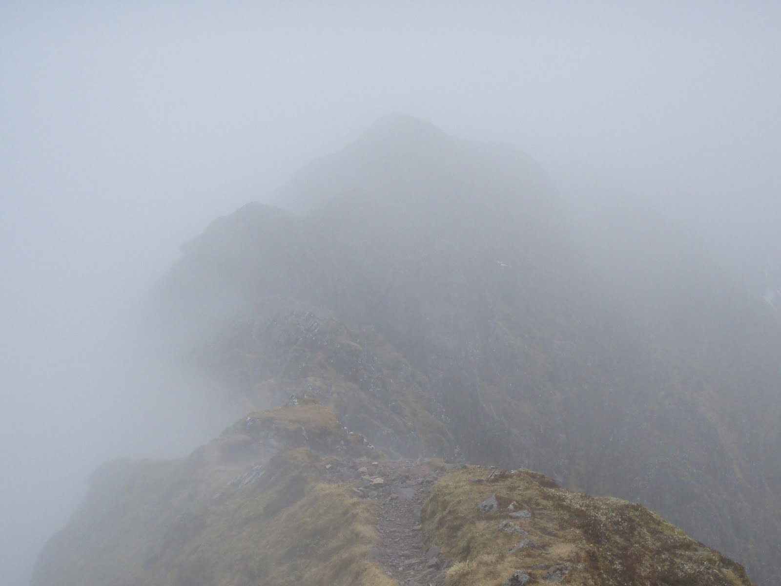 You know youre on holiday when you can get up late and go and do what you like, so I got up extra late to prove a point, and didnt leave the car in Glencoe till 11am ! I did the Aonach Eagach Ridge, in summer conditions, wet windy summer ! Getting back to the car, I thought why not, so I went to do Curved ridge as well, summer conditions. Back to the car at 7.30pm. The crux of my whole day was definitely getting out of bed!