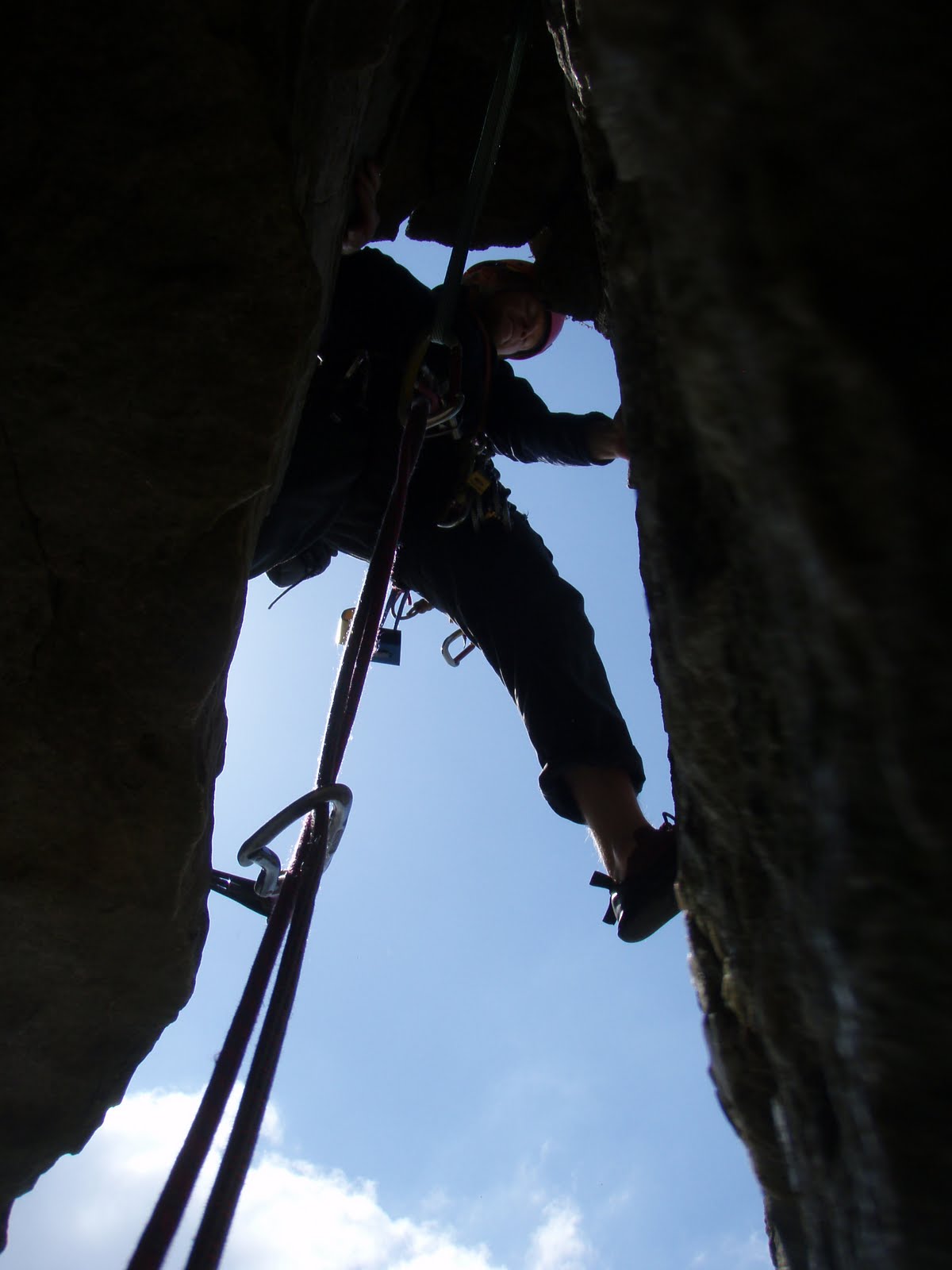 1st of seven pitches. I led DOWN this pitch to the hidden mini cave belay. This is Alex seconding down !!
