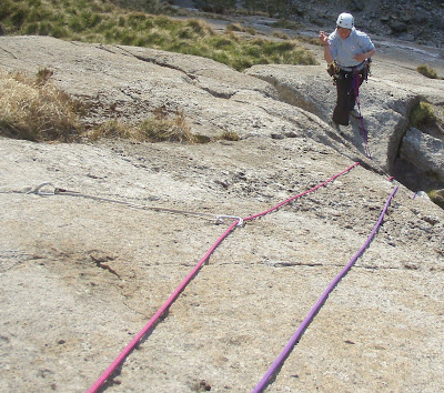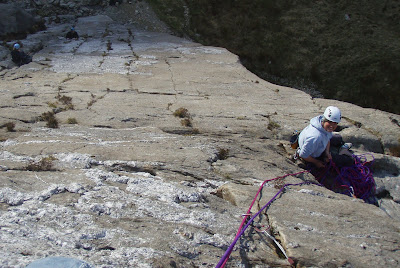 So, we left the Slate Quarries and Llanberis for something different to finish the day. We headed to Ogwen and Idwal Slabs - The Direct Route (HVS 4c) + Tennis Shoe (HS). We managed to climb and keep in the sun as the shade was creeping up the slab.