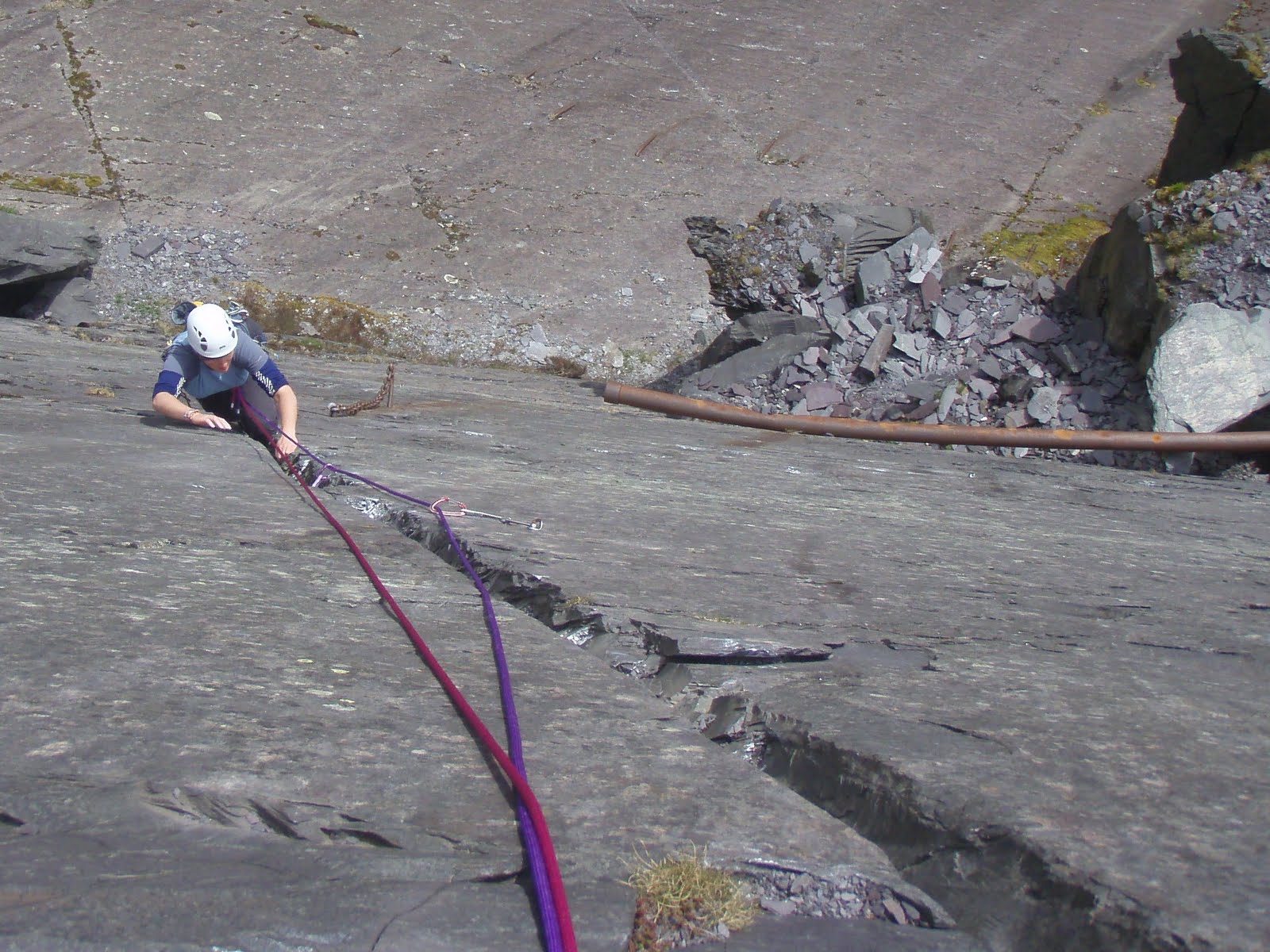 On the final section after the second boltI got to North Wales late !! So after meeting Kat we started climbing in the afternoon. The parking in Llanberis was already full, so we decided to start on slate in the quarries. We started on Looning the Tube (E1 5b) for a little blod slate action.