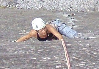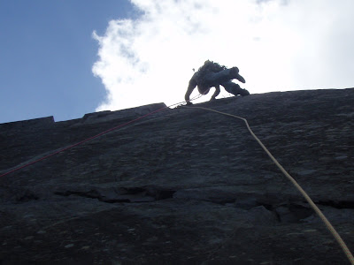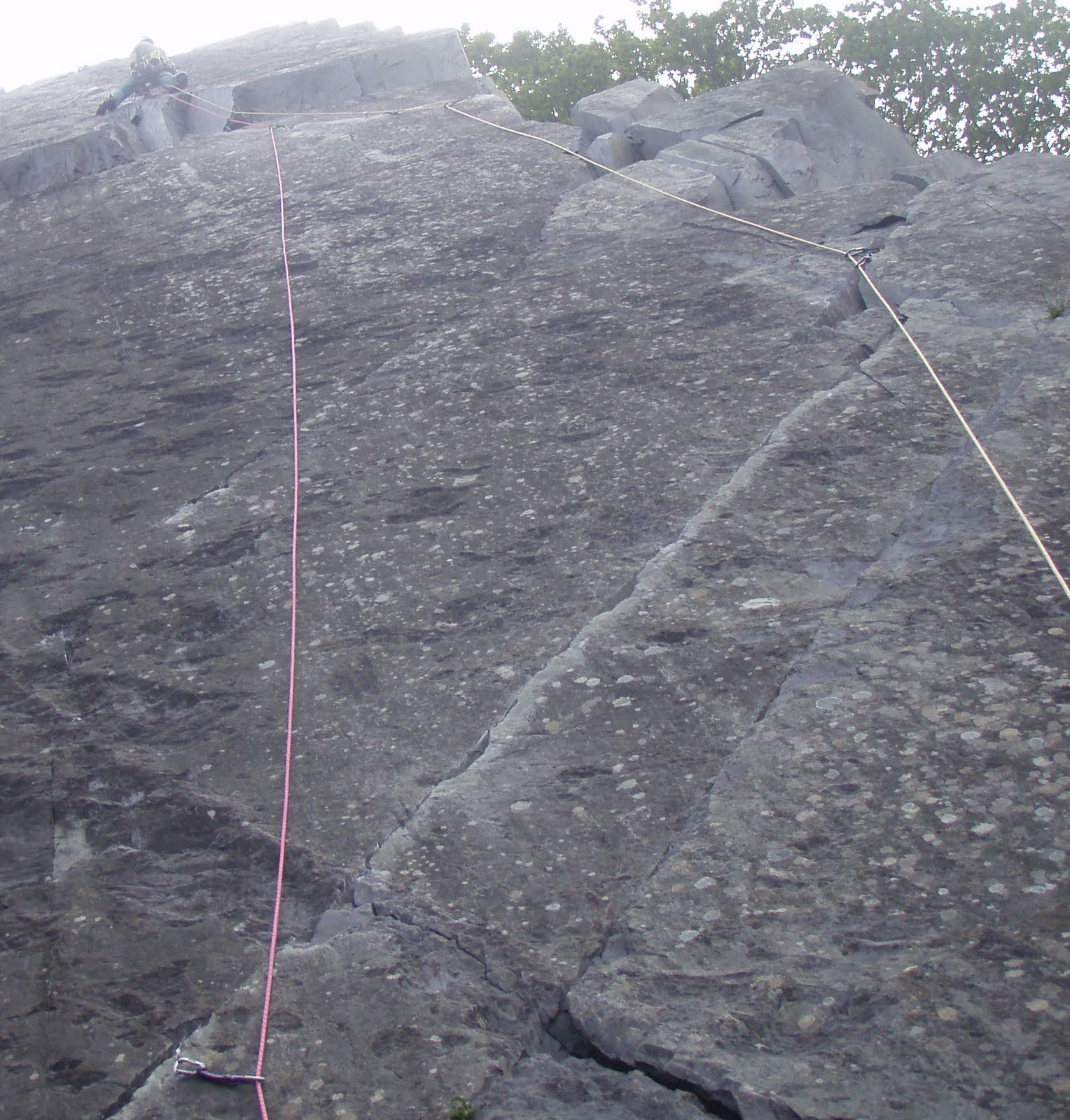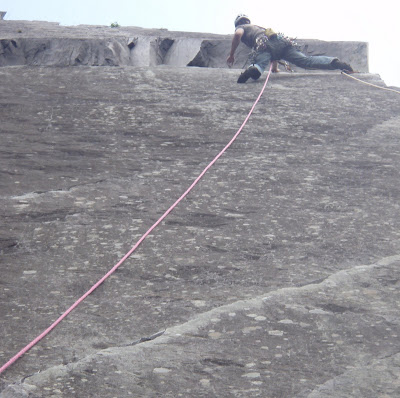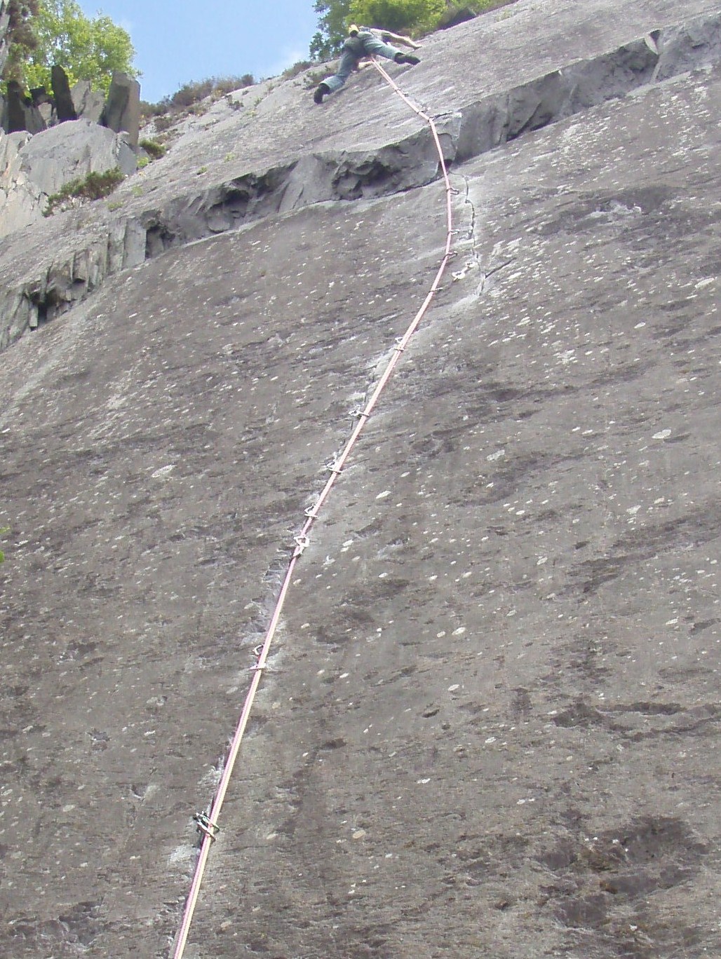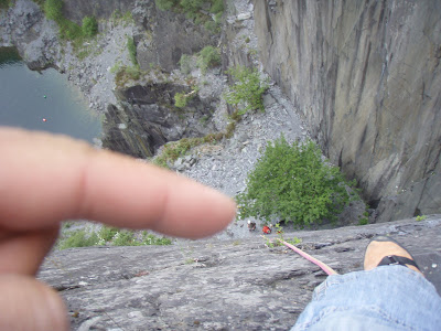 Claire is about to abseil down. Am I really small, or am I really really far away !! - Or does Claire have a giant finger !!!