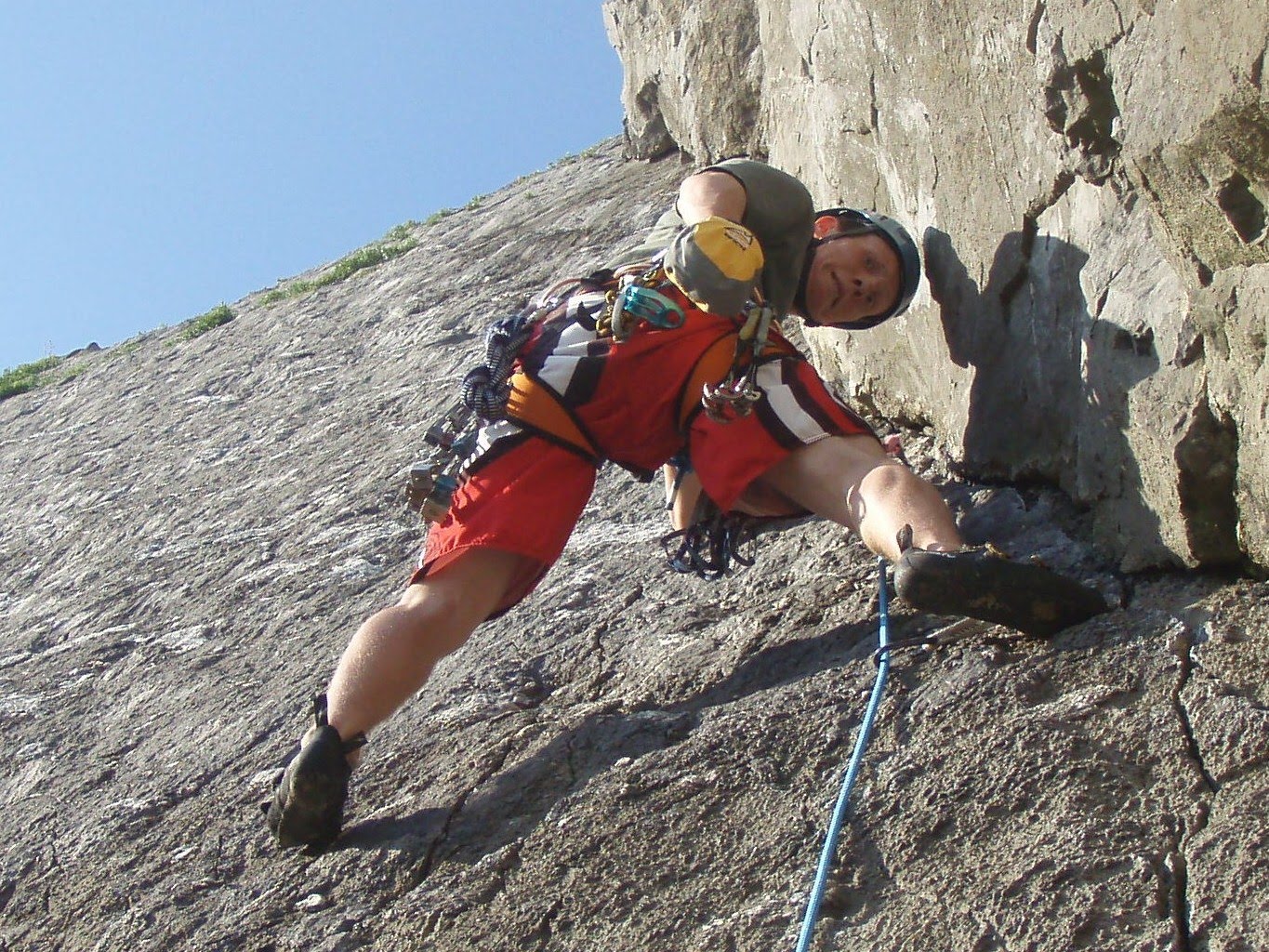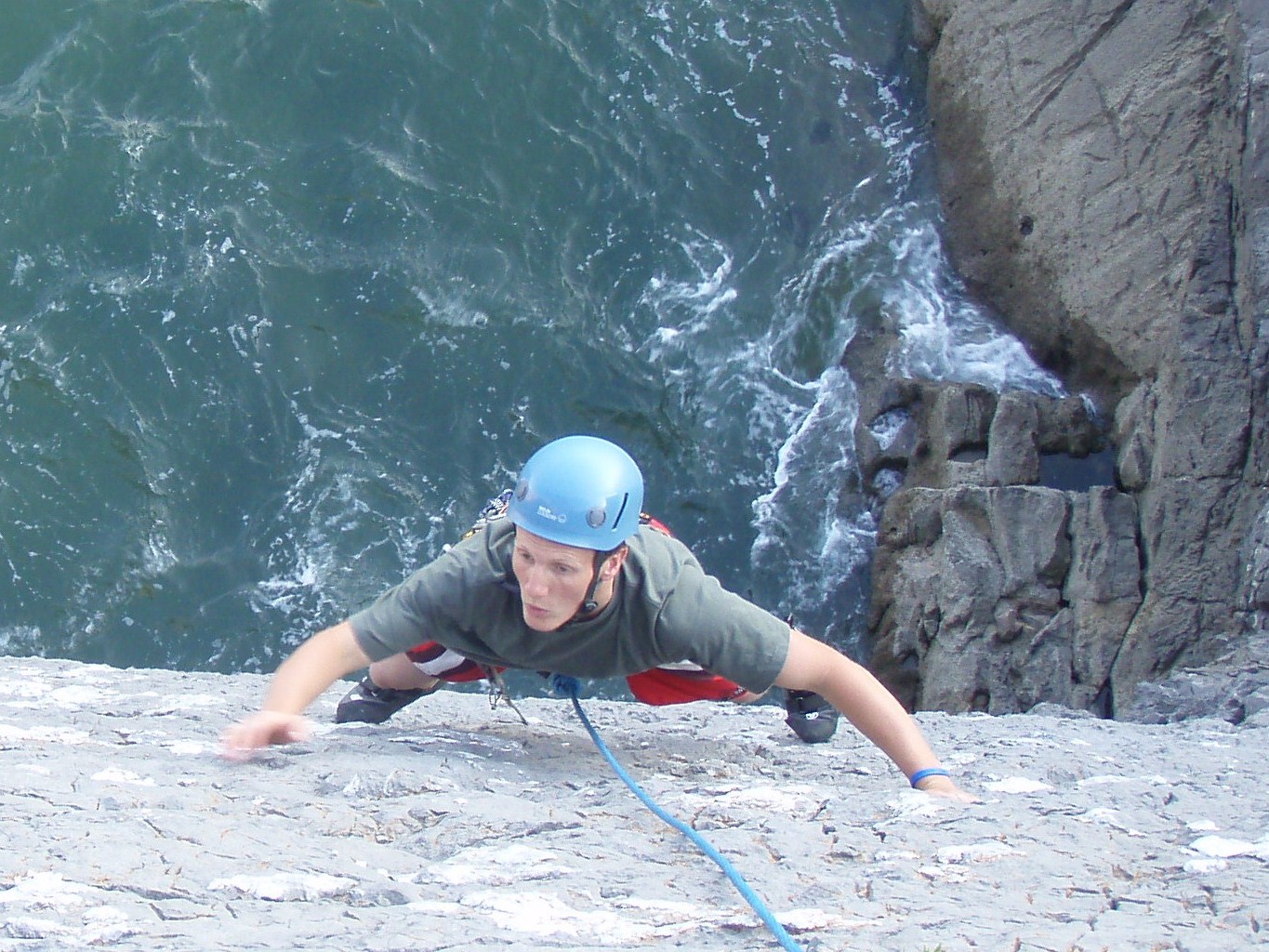 We then moved on to Arch Slab (with dry rubber by now) and a full sea below us - I'd rescued my approach shoes :)