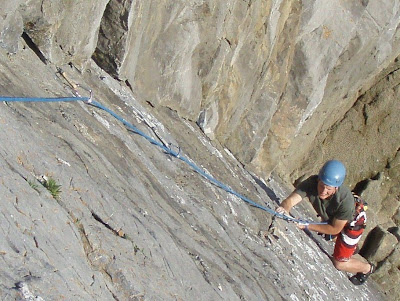 When it was his turn to lead - I suddenly realised I was going to get wet wet - and yes I did. So with slippery rubber, soaking rope, hands, trousers etc, it made the smooth limestone - exciting !