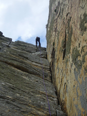 After lots of driving we finally got to skye and headed to Elgol to climb with what was left of the daylight. We managed to 'quickly' find Jamie Jampot. A great climb. Then we had a little time left after a long day so did Fertility Right near the right hand end of the crag.
