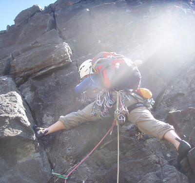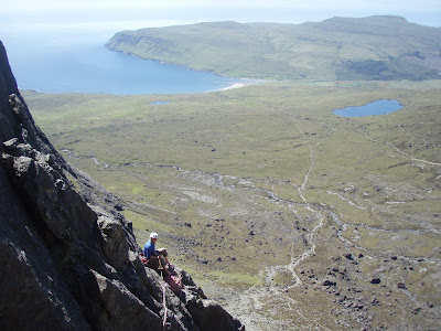 Lena belaying me, the scenery was stunning all day - we're high up on Sron Na Ciche