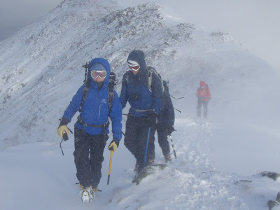 Working for Jagged Globe this week. Today was day 2 of the Intro to Mountaineering course. We headed off to Glencoe and Buachaille Etive Beag. We started our day, and discovered 1 of the3 clients was axeless!! So off to Ballachulish I went, and soon caught up with the group again - a good test of the recently acclimatised legs.. Here is Sam and Cat - they obviously had no idea the camera was on them!!