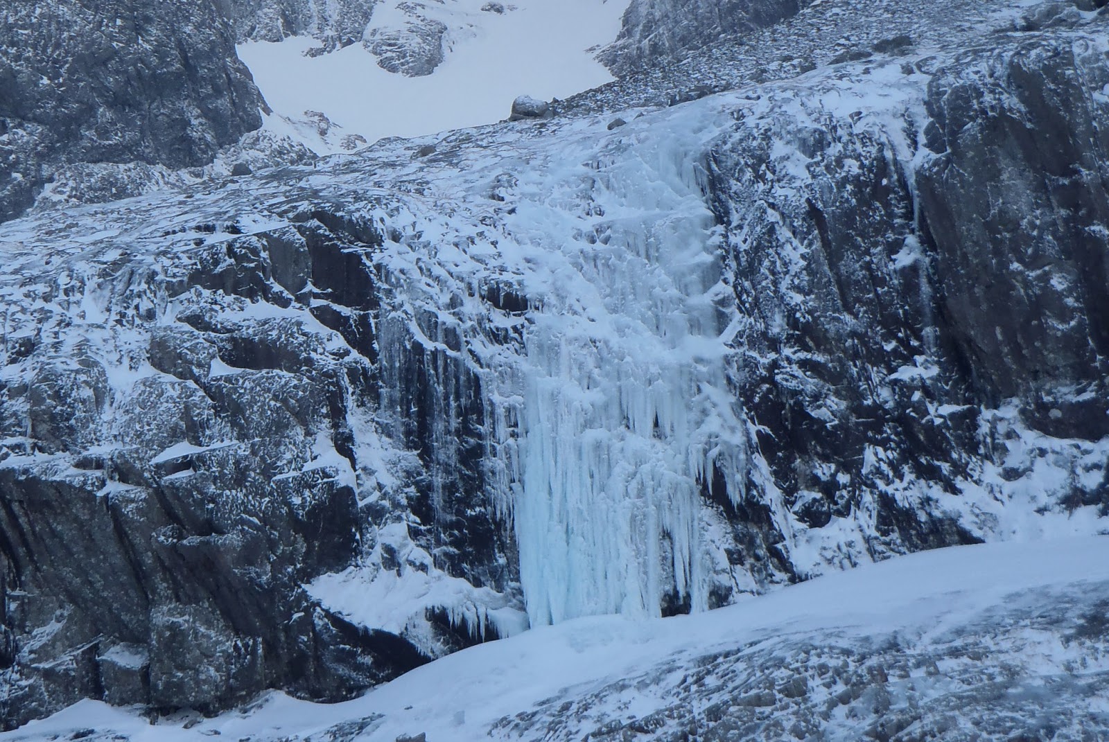 | Ice fall below Number 5 Gully, and the start of the Curtain |