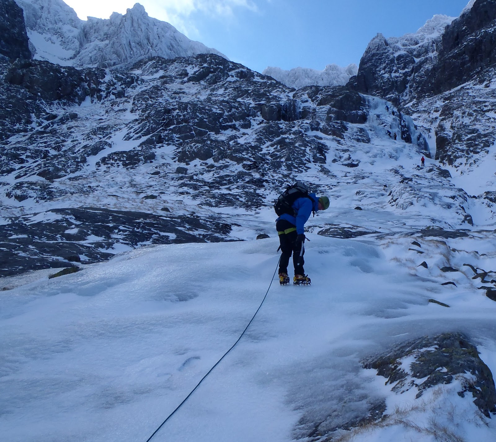 Jan and Jeff lead a few pitches doing all the work themselves and finally abseiled off an ice abseil to finish one of their first independent leads. Well done.
