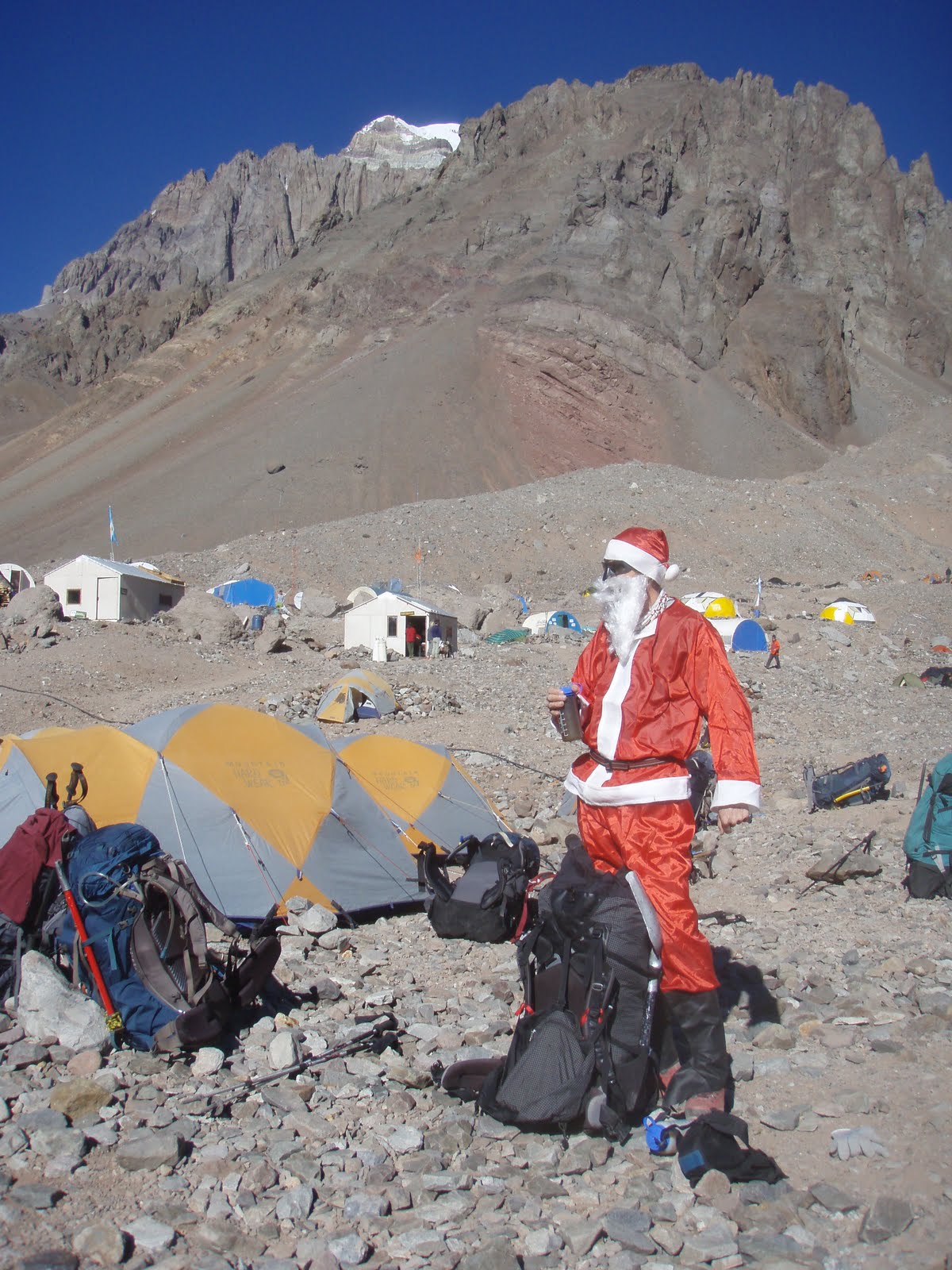 He's packing to do his first load carry from Base Camp (4200m) up to Camp 1 (5100m). Off in the far distance you can see the summit of Aconcagua...