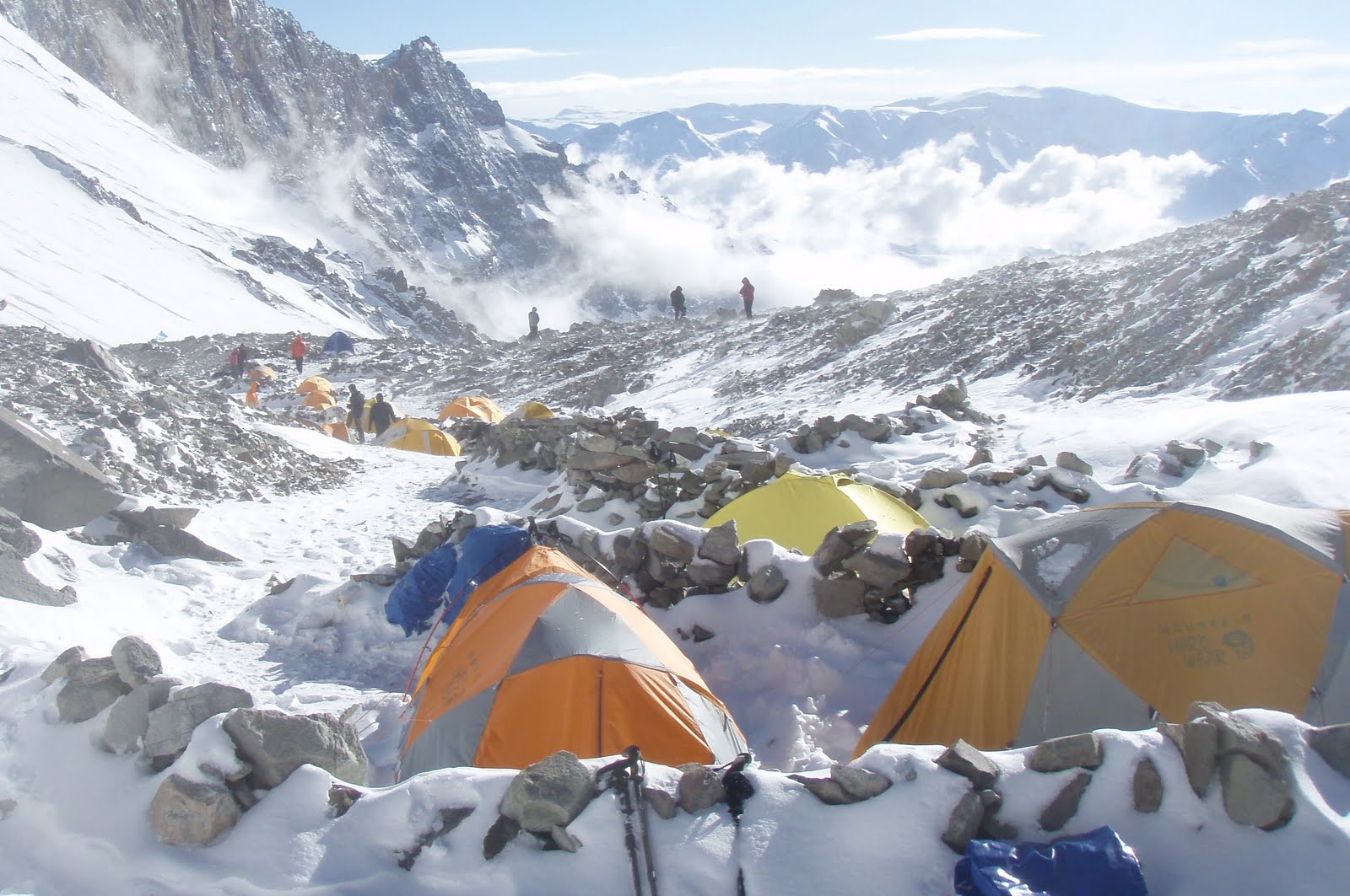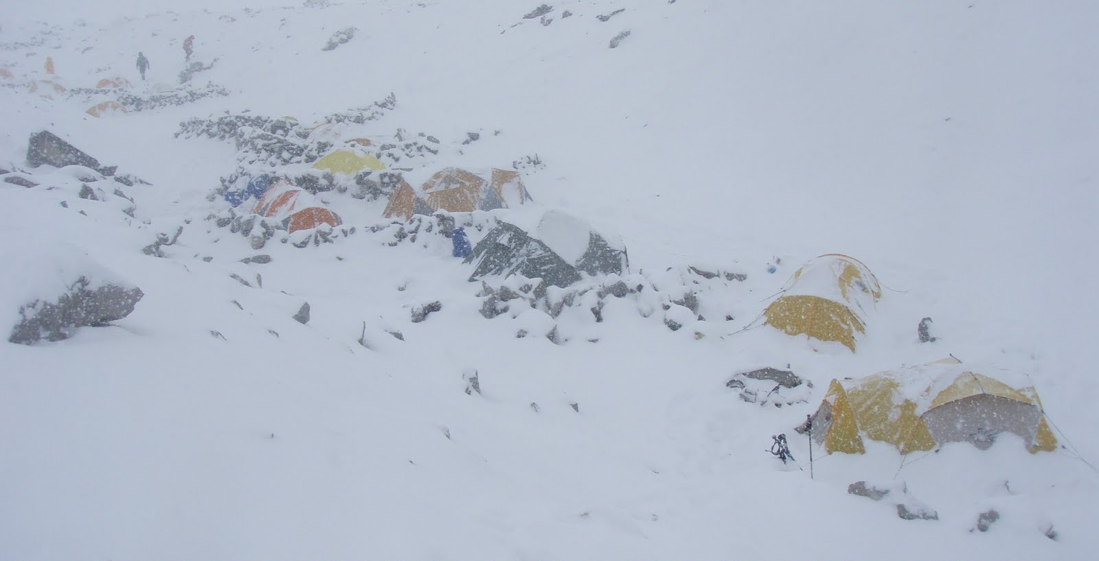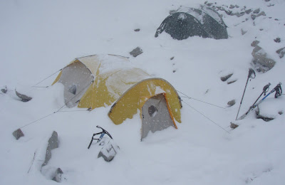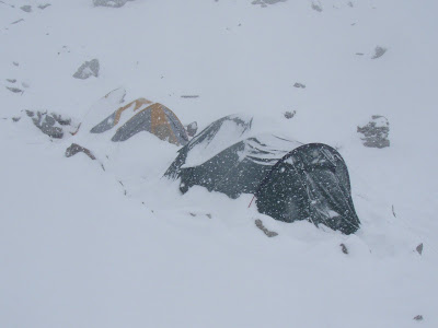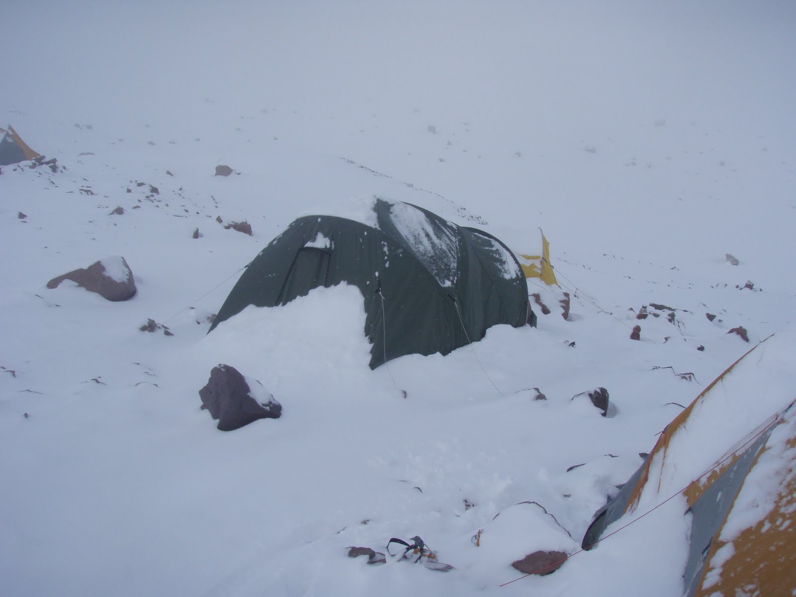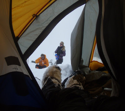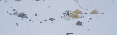 Campo 1 totally transformed ! Okay, so decision - today we're not going anywhere... A day indoors - as you can see in the photo... Let the strong winds blow today, tomorrow will be better.