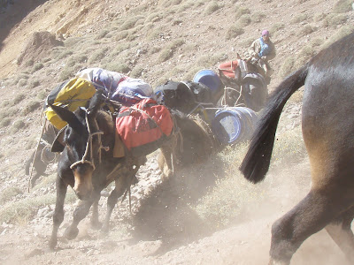 Day 3 of the trek, we see our mules close up. We had mule assistance on the 3 day trek - after that it'll be our horse power to get us up the hill... Just before our trek, lots of mules fell into the gorge and died! They're driven hard!