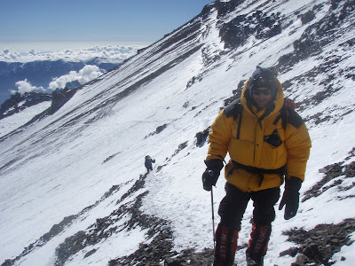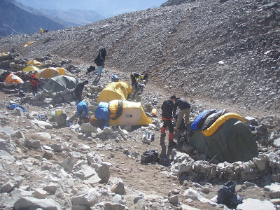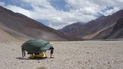 After a long rest, and a second load carry to camp 1 on the 27th - campo 1 is established at just below 5100m .... Happy campers. The weather is good, everything is going to plan.. But then Simon gets sick with altitude and so Phil and Simon have to be hel-evac'ed ... (today I found out that he was later diagnosed with HACE in the hospital !!)