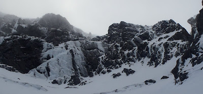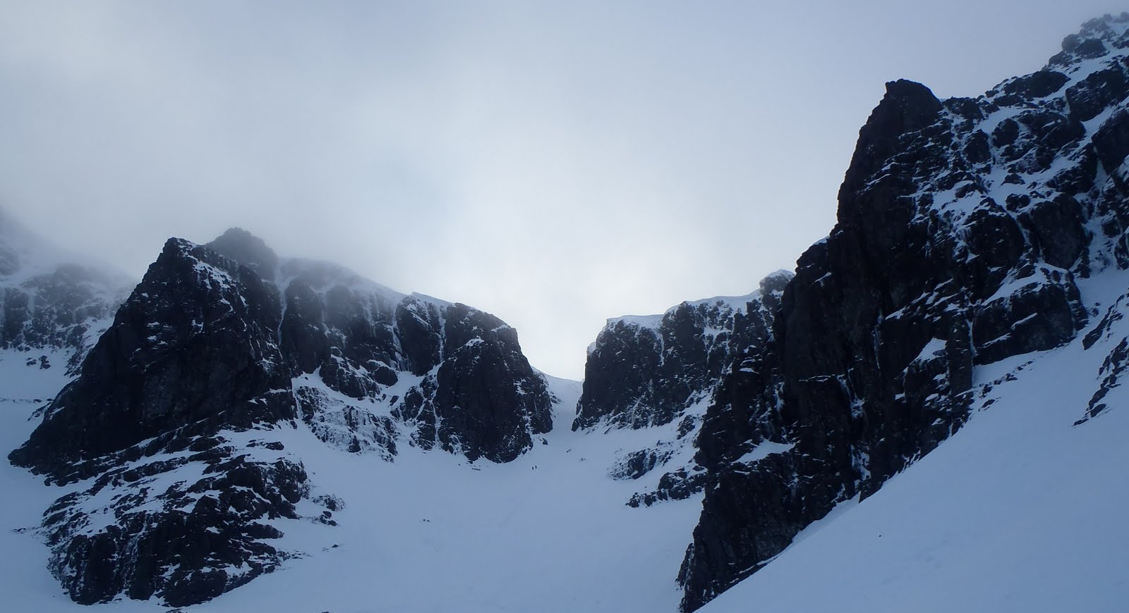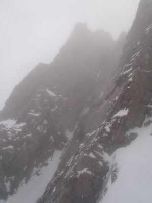 The plan had to involve some sort of gully line, which still held some ice. Matt, Emma and Ben started their day by doing a quick ascent of The Comb, followed by a descent of Number 3, and then a quick ascent of Thompson's Route. We opted for the remaining ice on Number 2 Gully Buttress (III***).