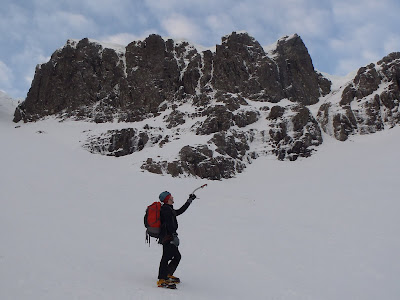 Andy Stotesbury looking at our route. Creag Coire na Ciste behind.