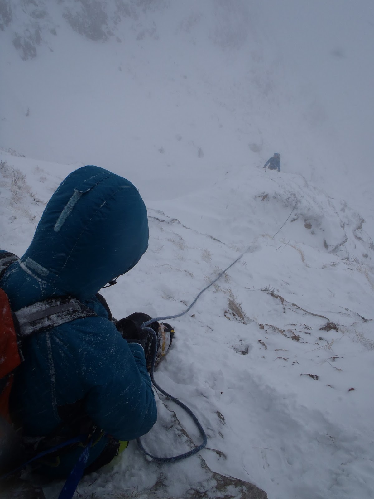 | Jan alternately leading with Jeff up 4 pitches to the side of the frozen waterfall |