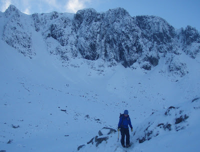 Can you make out the avalanche debris that has come out of Forked Gully, Twisting Gully, SC, NC and the pinnalces. It was point rather than slab. There were lots of climbers about - and people bum sliding down Broad Gully. Tomorrow we'll give them a bigger challenge in Thursdays awesome weather - bring it in...