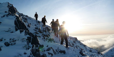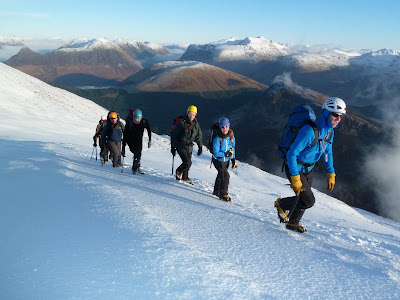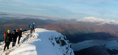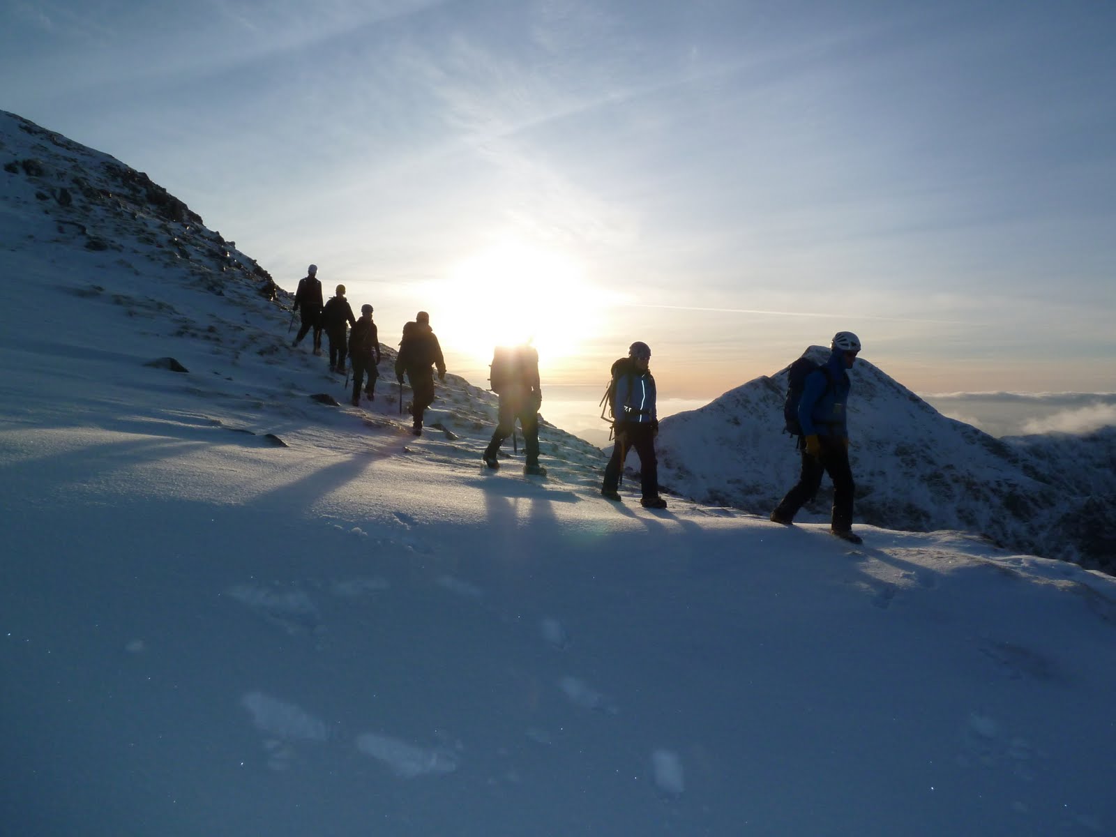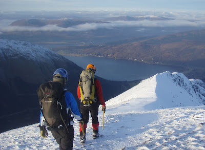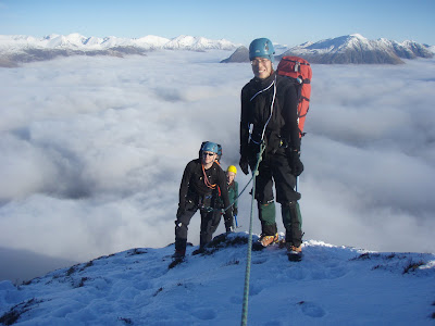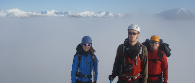 Finally we got harnesses and ropes out for the steep rock bands on the ridge. Our rack consisted of a hex and a camelot - awesome!