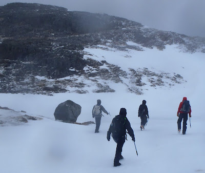 Matt and KateToday I was working for West Highland College with the Adventure Tourism Management degree Students. On the cards today was winter navigation training. I decided to get up to the snow and head for Aonach Dubh. Luckily for us, to make navigating a little more challenging, the weather was wet and windy. As we started heading higher, climbers were passing us on their way down after their climb - their idea was to finish early before the weather turned too nasty.