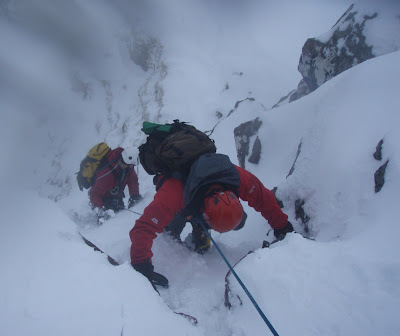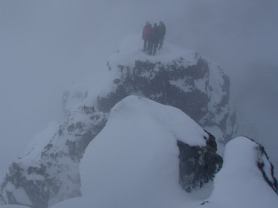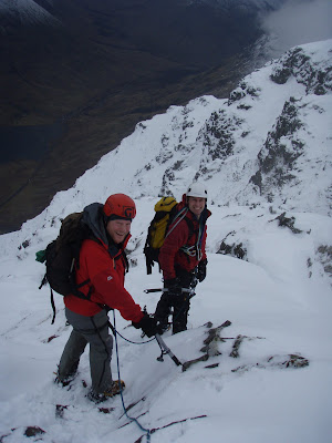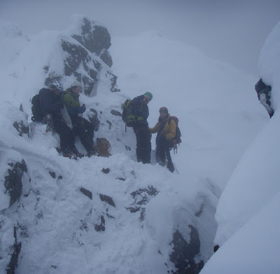 Today Bill, Stu and I headed for the Aonach Eagach ridge. Steve Stout and party had started before us and so broke trail in the DEEP snow - thank you ! When we took over the lead we had to return the favour and brake trail - exhausting!!