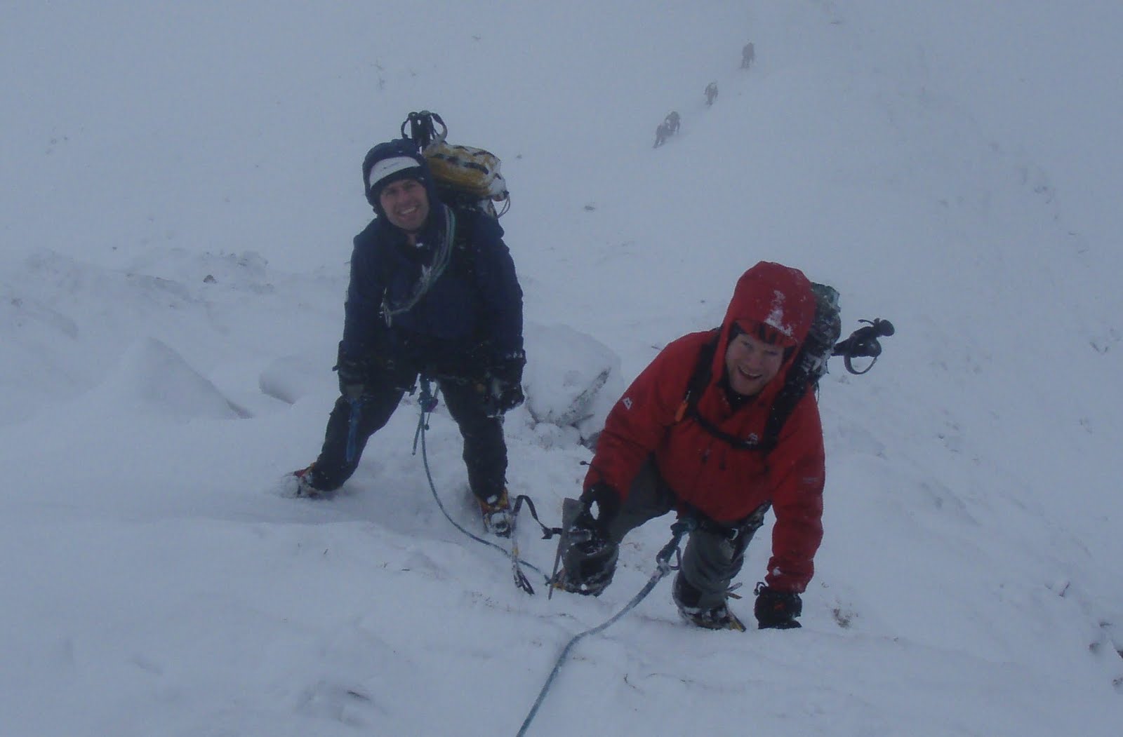 This week I'm with Bill and Stu on a Intro to Snow and Ice Climb Course. We spent day 1 on the East Ridge of Beinn a Chaorainn. There was a great deal of snow, and mostly very poor vis. The climbing was excellent as usual...