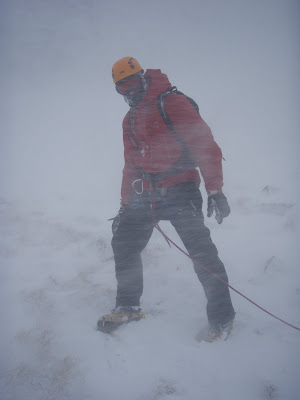 Finally after some quick moving, missing lunch, deciding that actually we really DO need our goggles on we managed to get - somewhere - who knows - we could see 10m ! The wind was building stronger and stronger. Not a time to chill for lunch yet. After the CIC - the wind decided to slap us about, and push us around - occasionally picking us up.... The wind was gusting about 80mph now. We came across the Jagged Globe Winter Mountaineering team having an awesome time, led by Sam Leary and Mark Hendry...We joined them in a game called - let the wind pick you up or pin you to the ground.. It's difficult to recognise anybody when everybody is looking through snow clouded goggles - and everybody is wrapped up in their battle gear.. Back to the car by 3 - lunch time :) - another day at the office - DONE...Tomorrow the wind is only 110mph so off we go again !