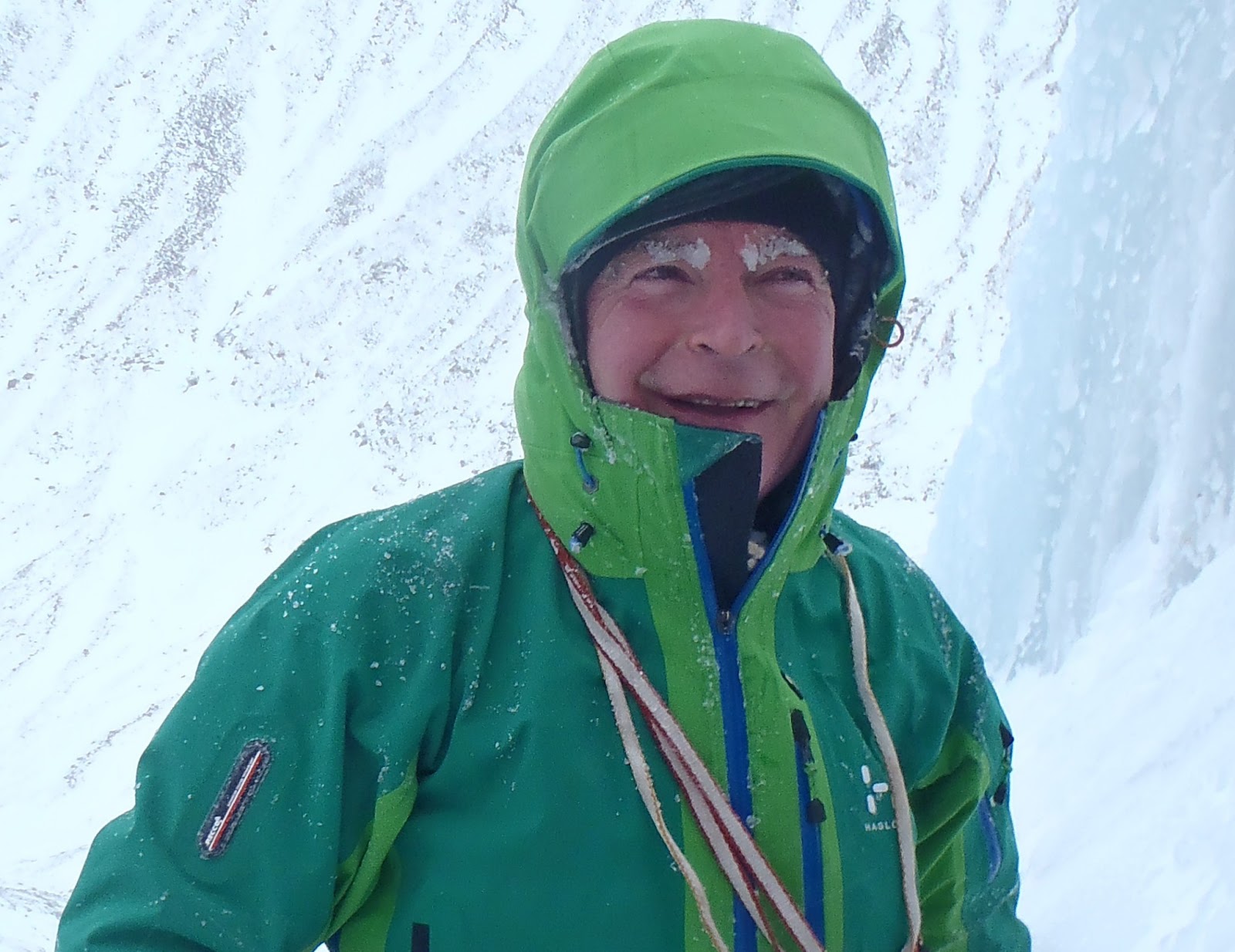 | Occasionally when the sqauls abated, we were able to see each other. Here is John sporting his wintery brows |