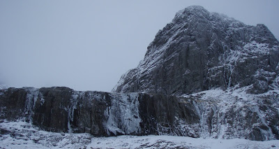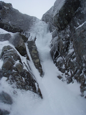 Friday was day 5 of our Snow and Ice climbing course with Roger and Fred. The weather and snow has been difficult all week and we have had to work to climb in the wind and avalanche prone conditions. On Friday we headed back to the Ben - in a vehicle without winter tyres! So we had to park low on the Ben track - hardship!! After our walk in this is the view of the forming CIC cascades.. Not there yet...