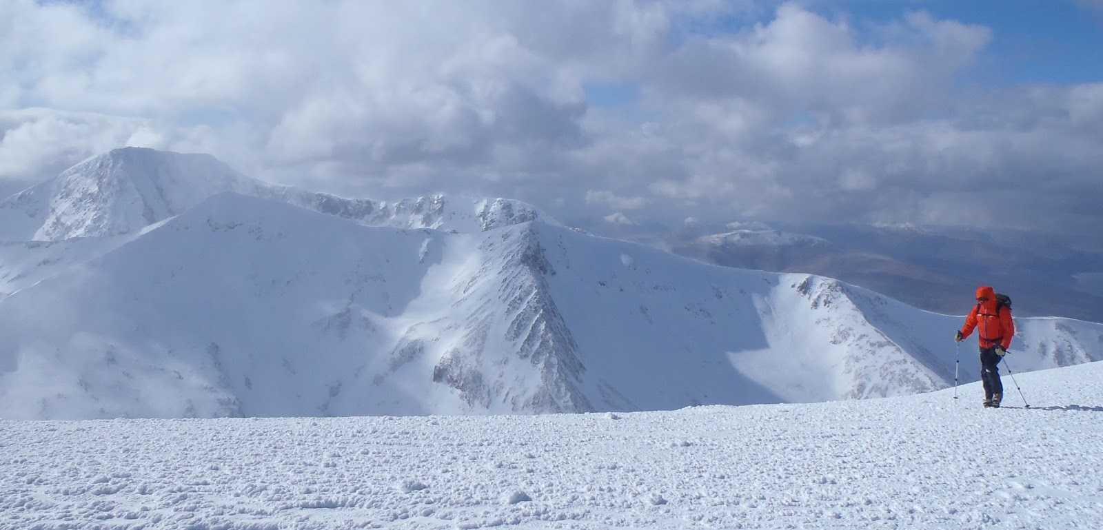 | The ENE ridge coming down from Carn Mor Dearg on the left of the background |