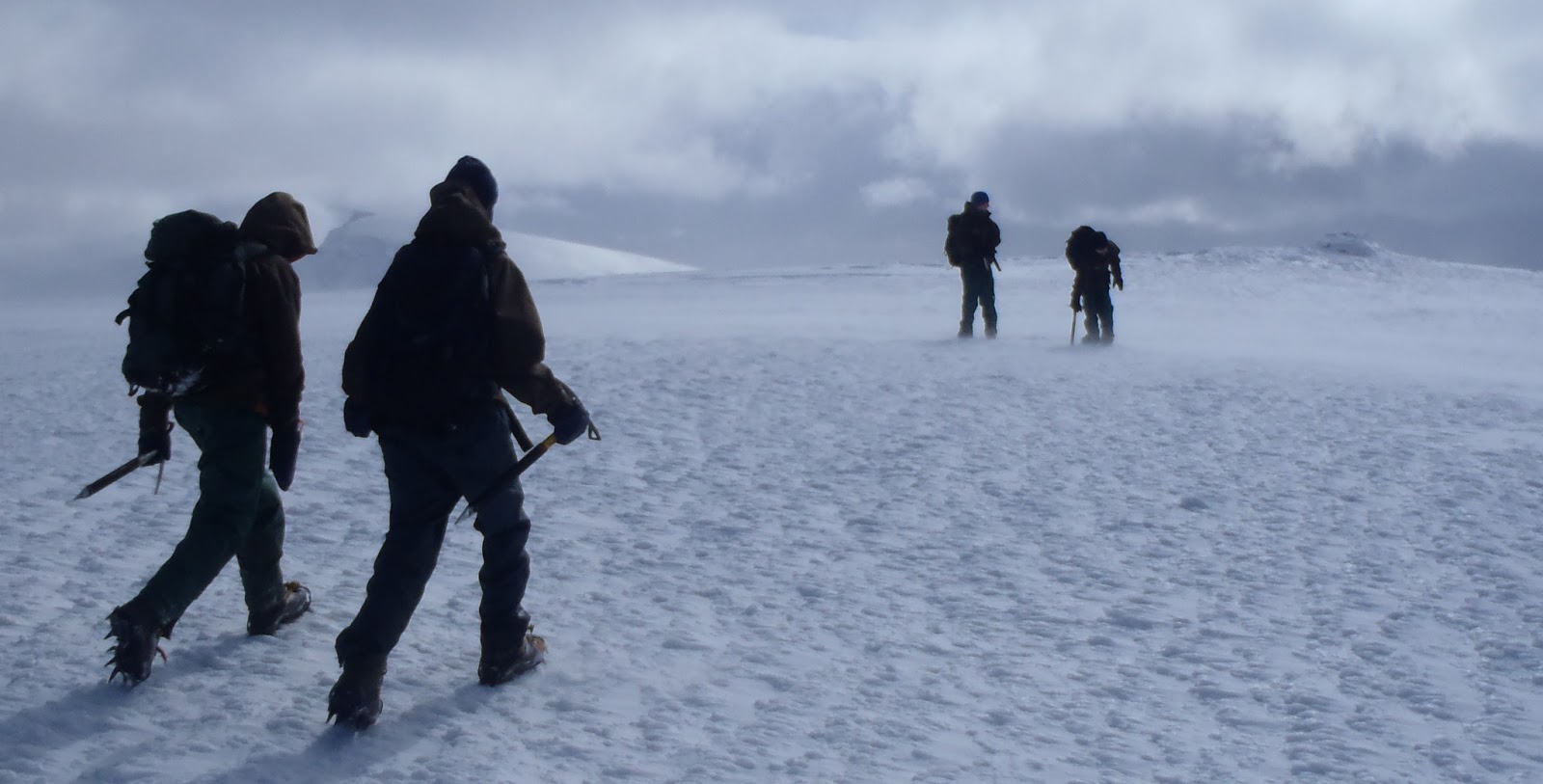 Today with good weather Dennis and I took an Outward Bound group up Aonach Mor for their first ever taste of winter walking, for most of them first taste of Scottish hill walking and first munro. It turned out to be a great success and fun for all. This was a good warm up for their expedition tomorrow.