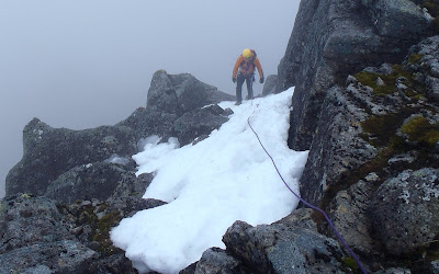 Green, Comb, White Line, and Glovers are not complete any longer, but there were lots of routes climbed today, for example Tower Scoop and No. 3 Gully Buttress.