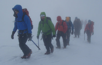 Okay, so here we go, day 5 of our course. They all want something a little steeper to finish their Intro course - and obviously another summit - so we headed for Ben Nevis... Actually I haven't been to the summit so far this winter, so it's all about me getting to the summit..! Here is a view of Douglas Boulder and the start of Tower Ridge - not much on it - is Spring here ! Zac Poulton climbed Tower Ridge yesterday and said it was okay. He was on NE buttress today.
