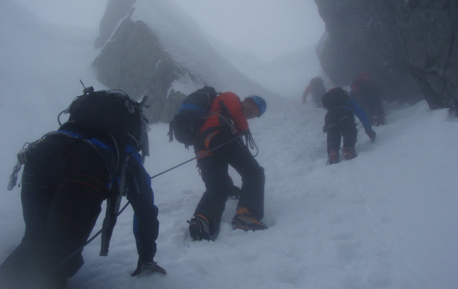 Alex, Ed and I took the gang up into No. 3 Gully. From the left is Graham, Ben and Guillermo (from Peru.. Is the Ben better than the Cordillera Blanca? Discuss!), then Alex, Jamie and James..