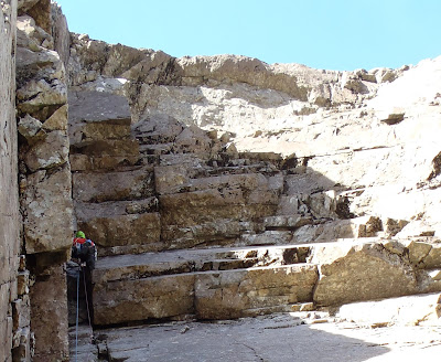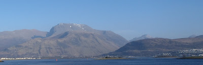 Last night I took Ken (applemountaineering.co.uk) up on his idea to climb Centurion (HVS****) on the Ben today. Only yesterday I was wearing waterproof trousers, rigid boots, gloves, using axes and crampons - and now today, a chalk bag, rock shoes and walking up the Ben in trainers! Centurion from a distance looked perfectly dry and even in the hot morning sunshine!