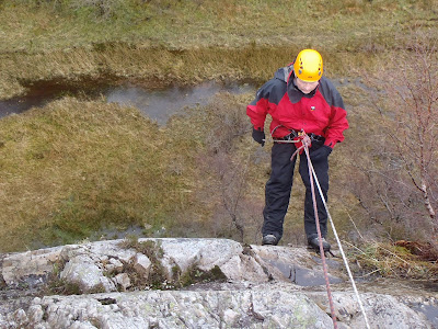 Today with the Mountaineering team we stayed low, working on a few of the core skills that mountaineers need. We started with the most basic ropework, knots, anchors, and then went on to the first ever abseil for most of the team. This was in at the deep end for some but an experience they were glad to have. This sets them up well for some of the challenges they are setting themselves for 2012 - for example the summer Cuillin Ridge, and in particular the Inaccessible Pinnacle.
