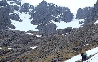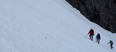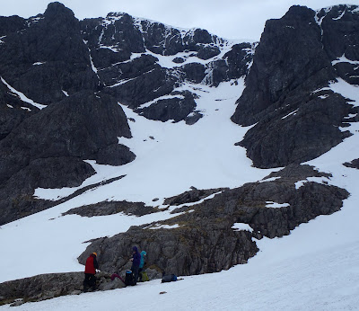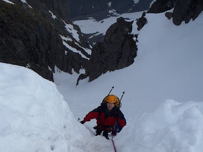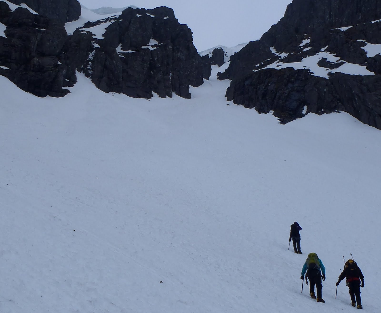 The Jagged Globe Mountaineering team had their last day on Friday and it was their first day on the North Side of the Ben. We headed for a grade 1 gully - Number 4. This would be a good test for the team - they only put crampons on for the first time on Monday.