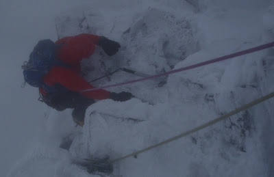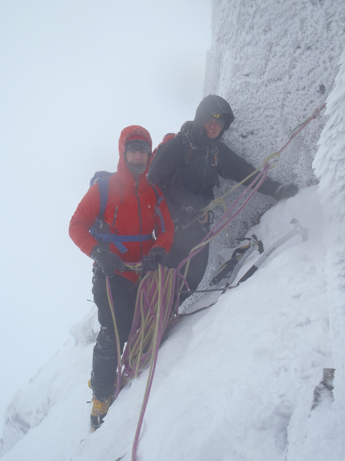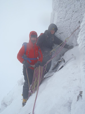 Abacus Mountain Guides - Winter ClimbingThis morning I met up with Dale and Lewis and we made a plan to go climbing - what else! They've just got to Scotland for a few days of climbing and they wanted to start it with a refresher on about III/IV. They like the full on Scottish experience so they are also camping - last night they slept in their down jackets! We went to the SCNL car park which was full - so we may not make our plan A climb - Twisting Gully. Eventually we got up to T Gully and found 3 teams on it - 1 climbing and 2 waiting! So we moved onto SC Gully - here 1 team had just started and 1 waiting (and 1 arriving behind us), so we moved on. We found Raeburn's from the NC start free of people - brilliant. There were 2 teams on Central Grooves, making good progress. However it was a bit windy, but the route was in amazing condition - the neve was hero and the rime ice was everywhere - what else can you ask for... More days of the same.