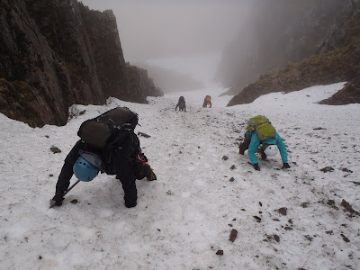 After the summit we opted for a descent of Broad gully to get more snow and crampon experience.