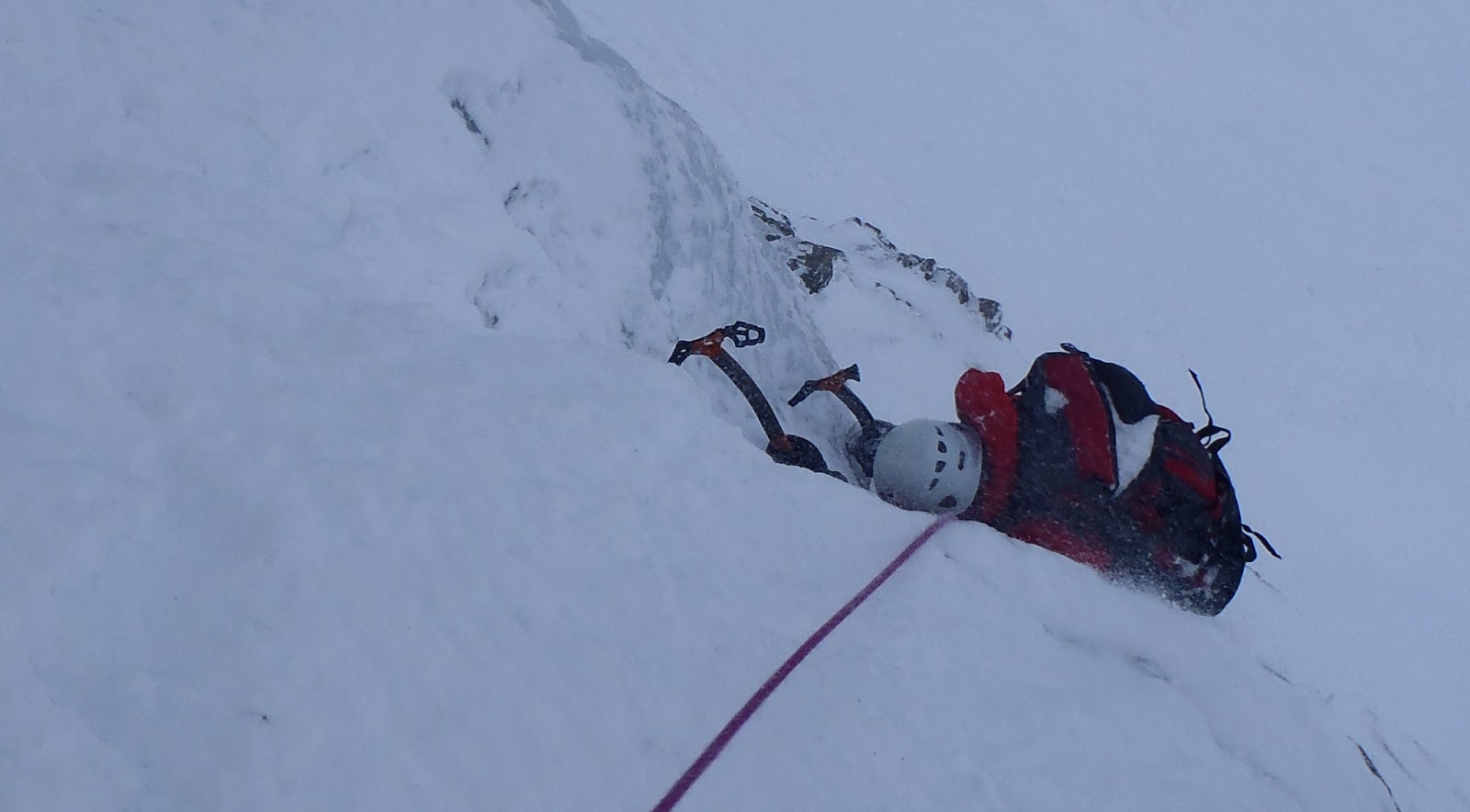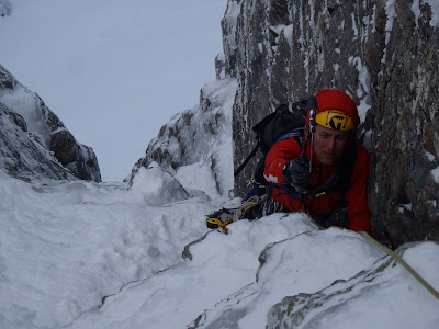 Jagged Globe - Snow and Ice ClimbingToday with perhaps the best day of the week, Ian, Catherine and I decided to head to Ben Nevis for another IV,4 climb. This time we headed up to Thompson's Route. We were beaten there by PYB and the MIC training course, but as normal they were slick and we soon had the bottom pitch to ourselves (although I got a good helping of snow and ice raining down on me). We did the climb in 2 pitches to the tat/spike and then another 2 to the top. Catherine and Ian said that Central Gully R-H was harder due to the most sustained steep ice, but both climbs were awesome and in great condition. The ice was chewy and didn't want to let go of the axes, so the crux of the day was taking the axes up the climb with you! We enjoyed great visibility at the top, but it looks like a little snow is on the way with a few whiteouts.