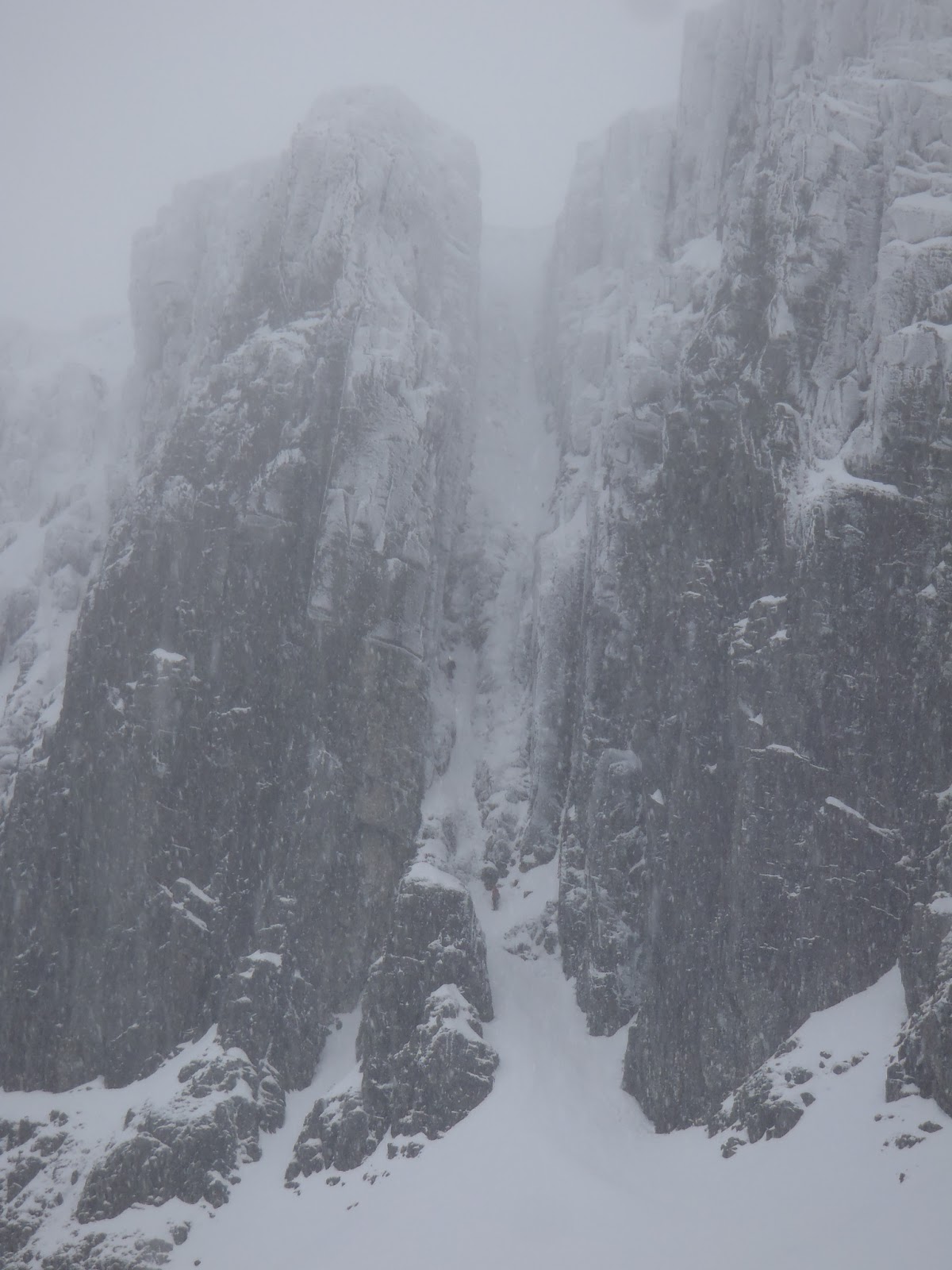 | Twisting Gully on the left hand side and Twisting Gully Right-Hand on the RHS - a team above us on it dropped an ice screw and a nut (as well as ice) |
