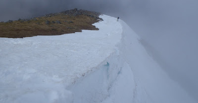 This week I'm working for Jagged Globe on a Winter Mountaineering week. We went to Nevis Range and the Aonach an Nid ridge - as did several others mountaineering teams and a team of Ski Mountaineers. We soon got onto some ground a little steeper, but always in the mist. At the top we got the ropes out and started looking at anchors and use of the rope.