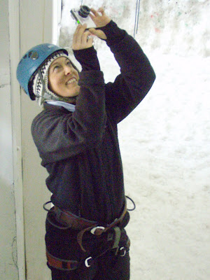 Helen taking photos of partner Chris doing well - somewhere up there.